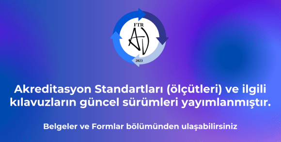 - Akreditasyon Standartları (ölçütleri) ve ilgili kılavuzların güncel sürümleri yayımlanmıştır. Belgeler ve Formlar bölümünden ulaşabilirsiniz