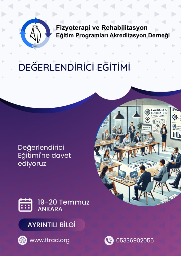 19-20 Temmuz 2024 tarihinde Ankara’da yüz yüze değerlendirici eğitimi gerçekleştirilecektir. Eğitime katılım sağlamak isteyen adaylar derneğe üye olmalı ve eğitim başvuru formunu doldurmalıdırlar. Üye başvuru formuna buradan ulaşabilirsiniz. Eğitim başvuru formuna buradan ulaşabilirsiniz. Eğitim katılım ücreti 500 TL dir. Eğitim yeri hakkında bilgilendirme yapılacaktır.
